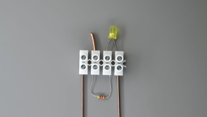 1. geschlossener Stromkreis: Anhand eines einfachen Stromkreises lernen die Schülerinnen und Schüler die einzelnen erforderlichen Komponenten kennen.
