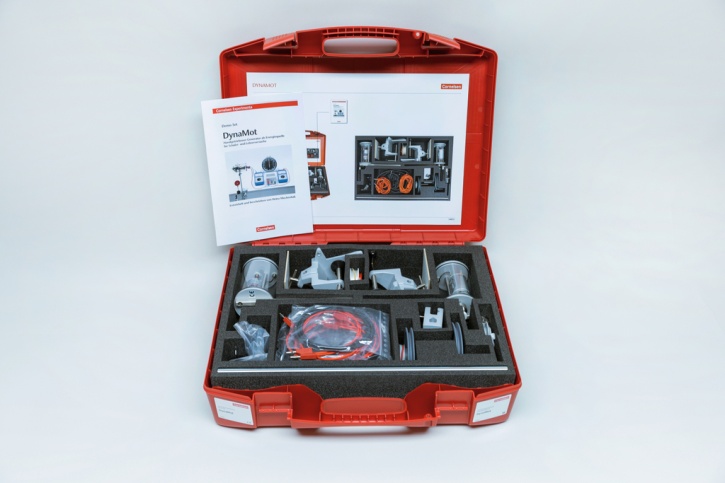 Das Demo-Set DynaMot ist ein Demonstrationsgerätesatz zur Durchführung von Lehrerversuchen mit dem handbetriebenen Generator DynaMot (CE). Der Generator kann sowohl als Gleichspannungsgenerator als auch als Gleichstrommotor eingesetzt werden und eignet sich für den einführenden Elektrikunterricht als Alternative zu Batterien oder Stromversorgungsgeräten.