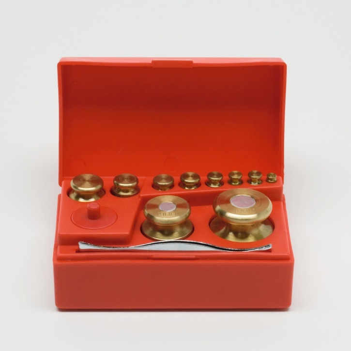 Der Satz enthält abgestufte Einzelgewichte, die vielseitig für Experimente, Wägungen und Demonstrationen eingesetzt werden können.